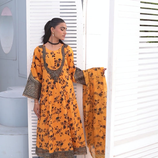 3-PC Embroidered Lawn Frock