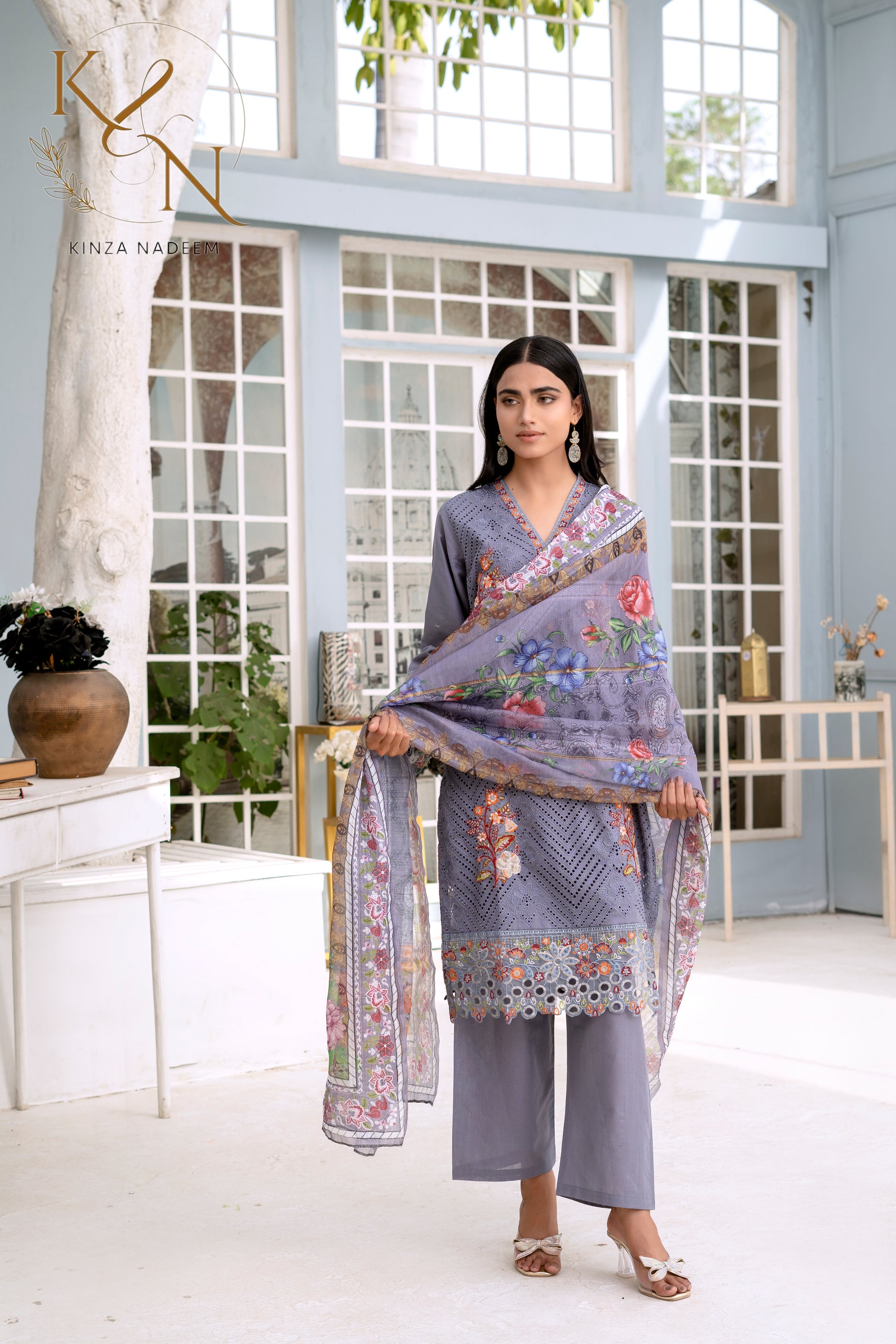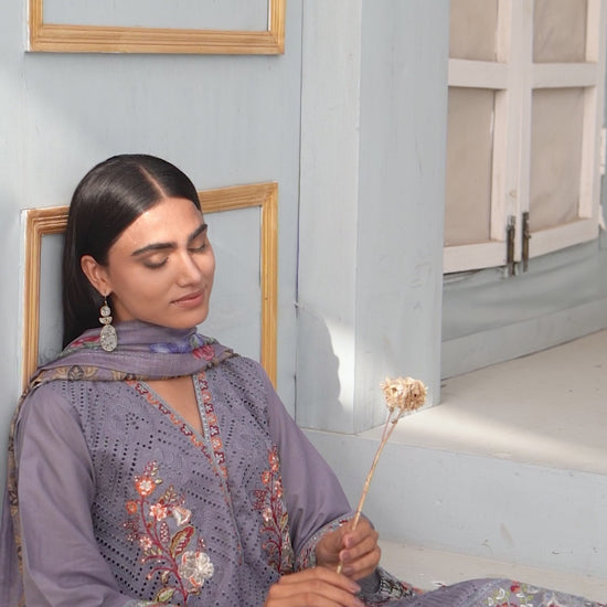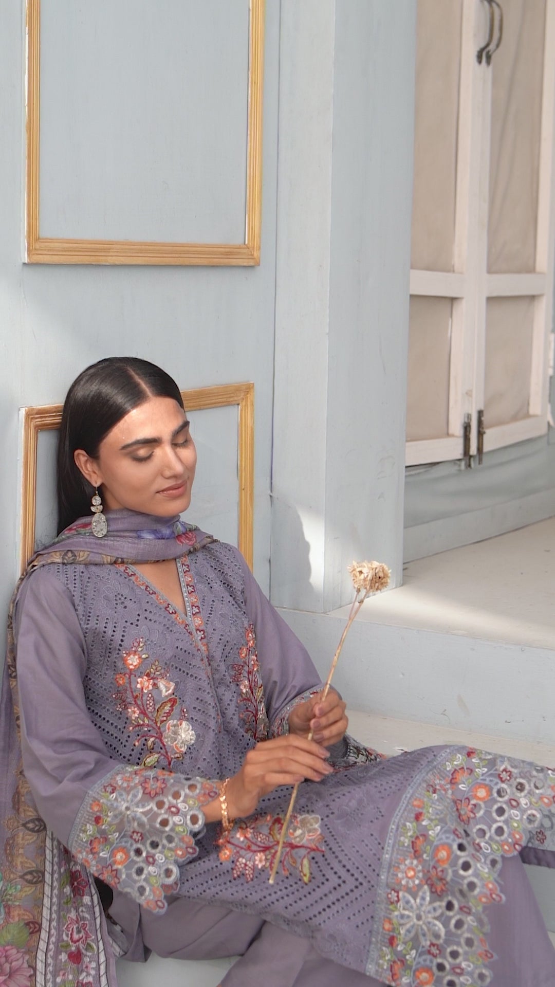Crafted from premium-quality cotton lawn, the top features intricate embroidery enhanced with delicate sequence work, adding a graceful shimmer that catches the light beautifully.-