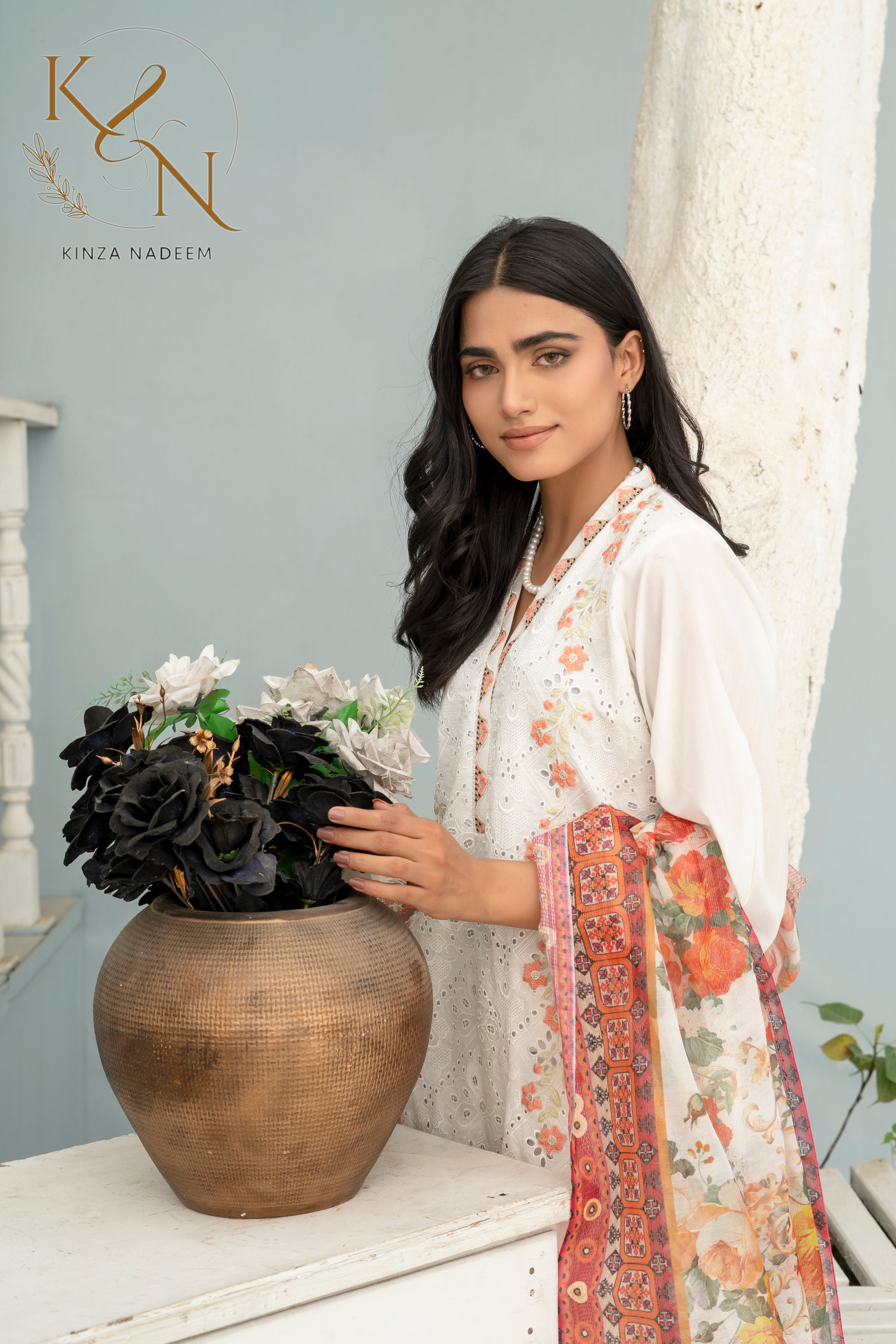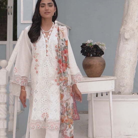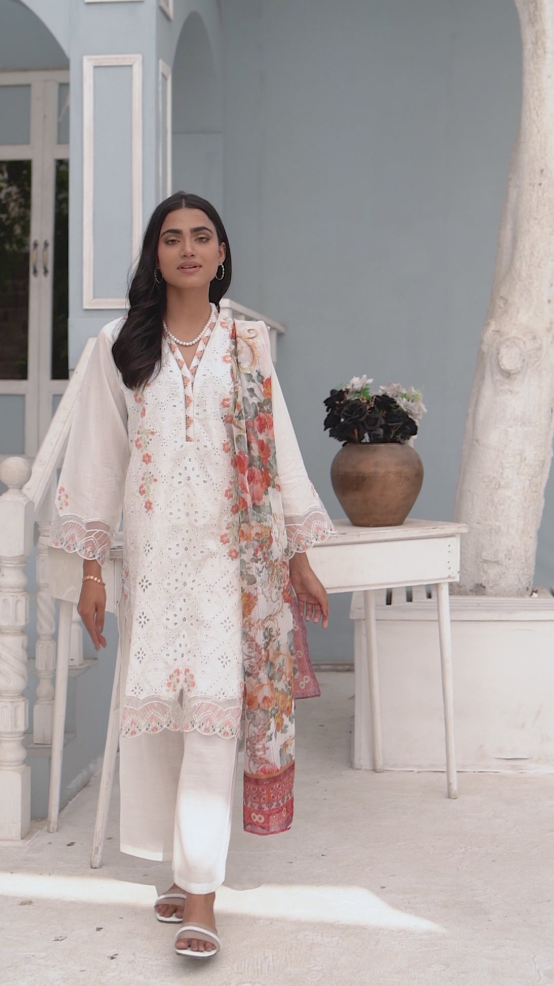 Crafted from premium-quality cotton lawn, the top features intricate embroidery enhanced with delicate sequence work, adding a graceful shimmer that catches the light beautifully.-