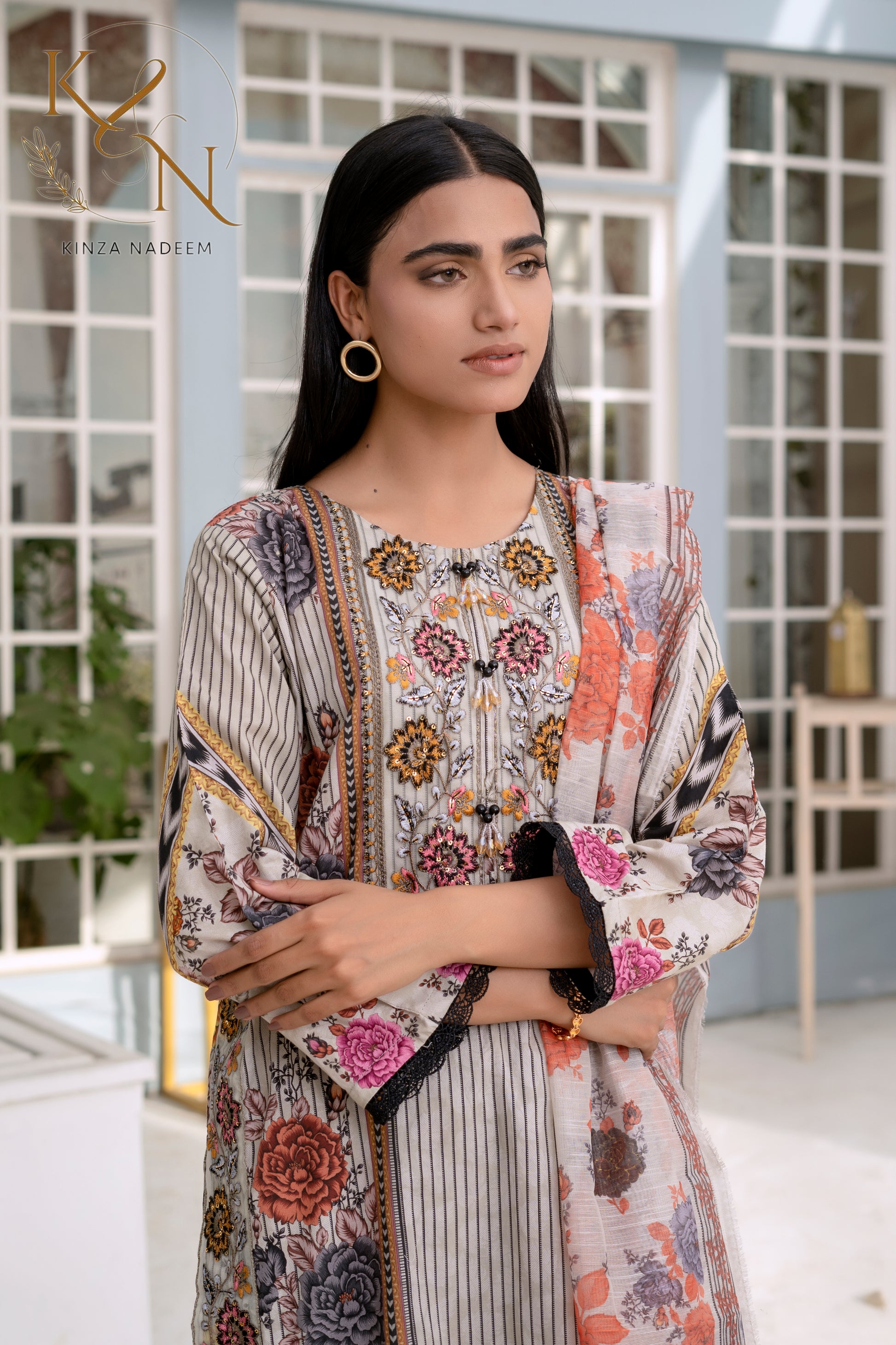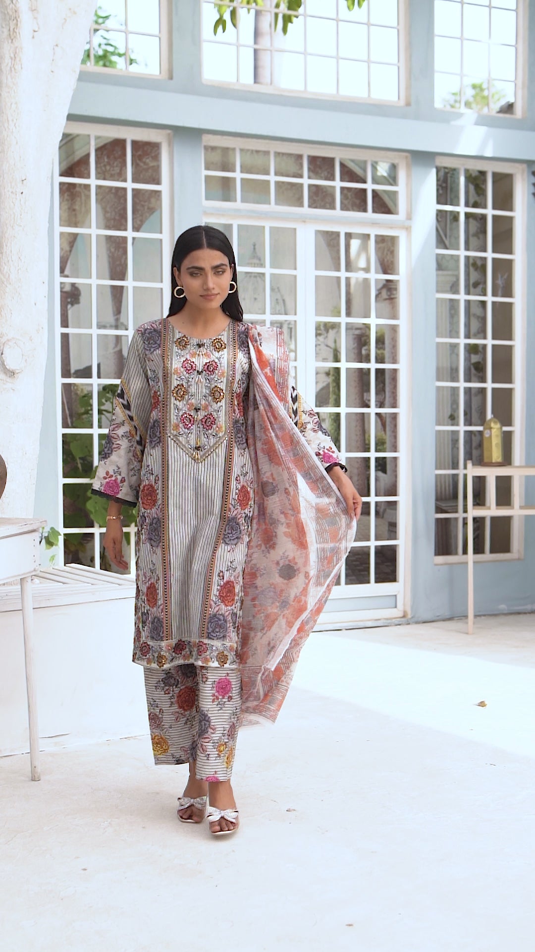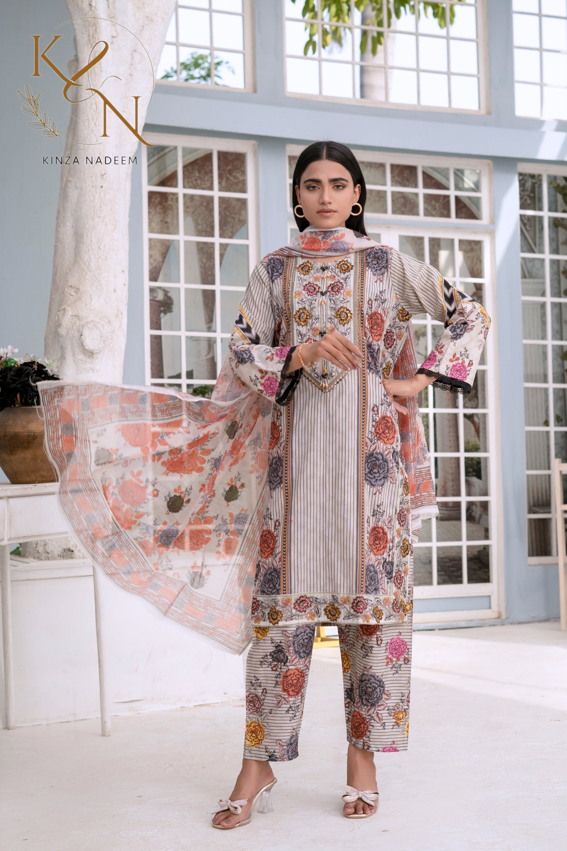 Crafted from premium-quality cotton lawn, the top features intricate embroidery enhanced with delicate sequence work, adding a graceful shimmer that catches the light beautifully.-